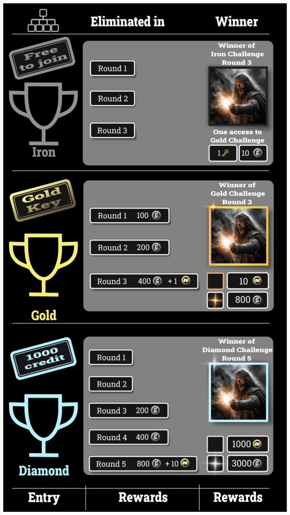 Here’s a breakdown of our three challenge tiers: Iron, Gold, and Diamond.